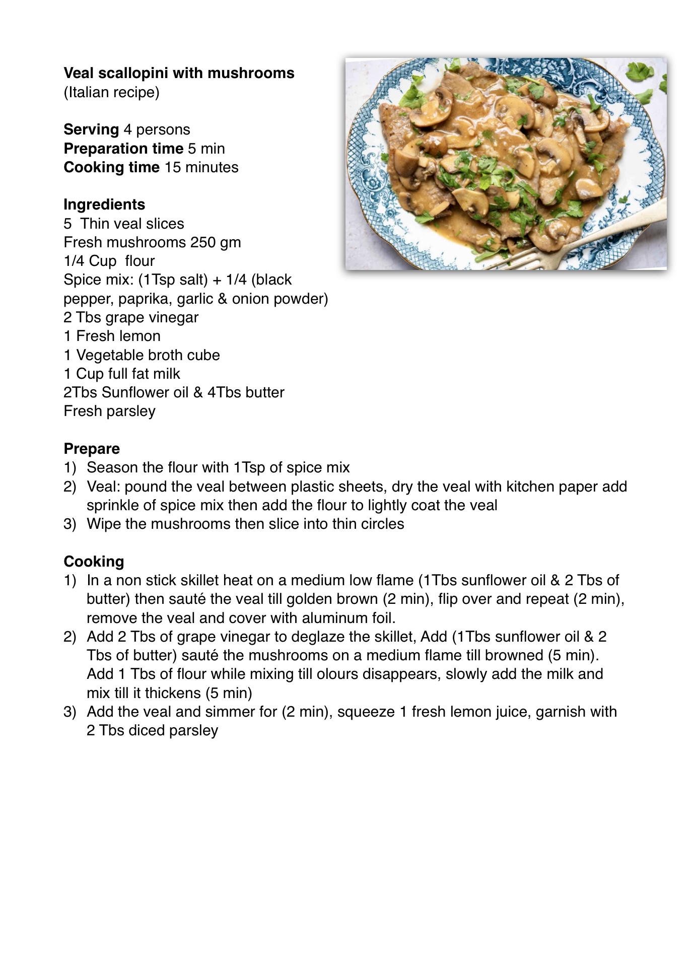 Veal scaloppini mushrooms