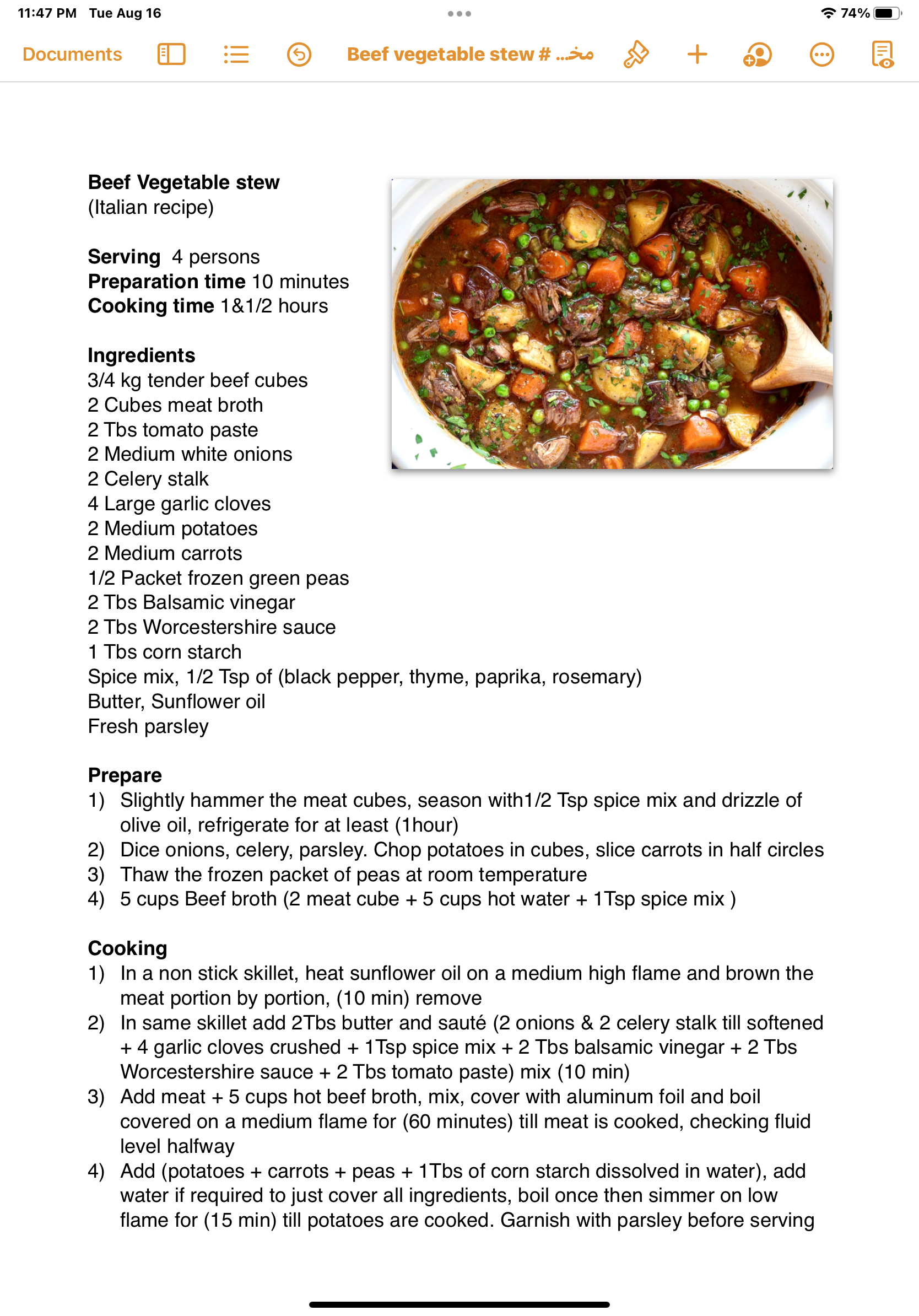 Beef vegetable stew