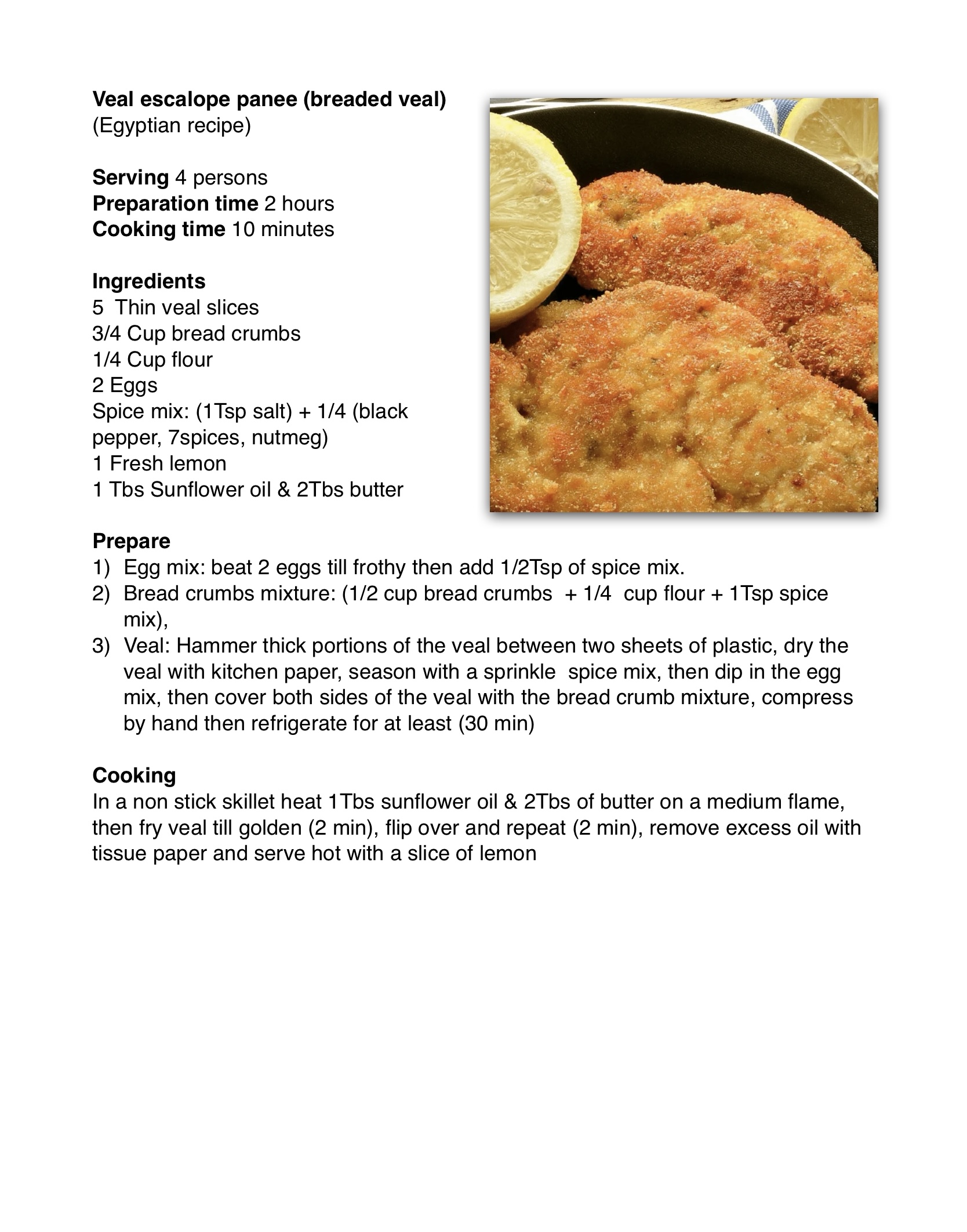 Veal escalope panee
